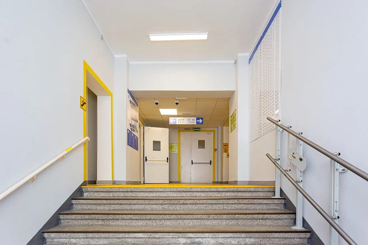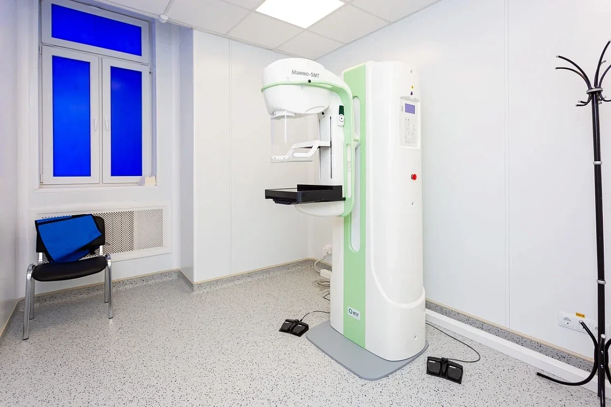 На первом этаже здания разместились диагностические кабинеты – флюорографии, рентгенографии, маммографии, медицинской профилактики, УЗ-диагностики, а также доврачебной помощи. Все кабинеты оснащены в соответствии с порядками оказания профильной медицинской помощи, в том числе современными маммографом, рентген-диагностическим комплексом, флюорографом и так далее.