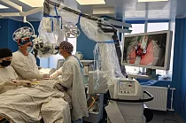 Как рассказали в медучреждении, этот аппарат предназначен для оказания высокоспециализированной помощи пациентам с сосудистыми патологиями спинного и головного мозга, онкологией. Ключевыми преимуществами микроскопа являются беспрецедентное качество изображения и высочайшая точность управления. Оптическая система транслирует изображение одновременно на три тубуса, обеспечивая возможность одновременной работы трех хирургов с использованием трех независимых модулей визуализации. Высокоточная оптика позволяет визуализировать даже самые тонкие сосуды и мельчайшие анатомические структуры мозга с исключительной четкостью. Компактность и мобильность конструкции обеспечивают удобство перемещения и использования микроскопа.